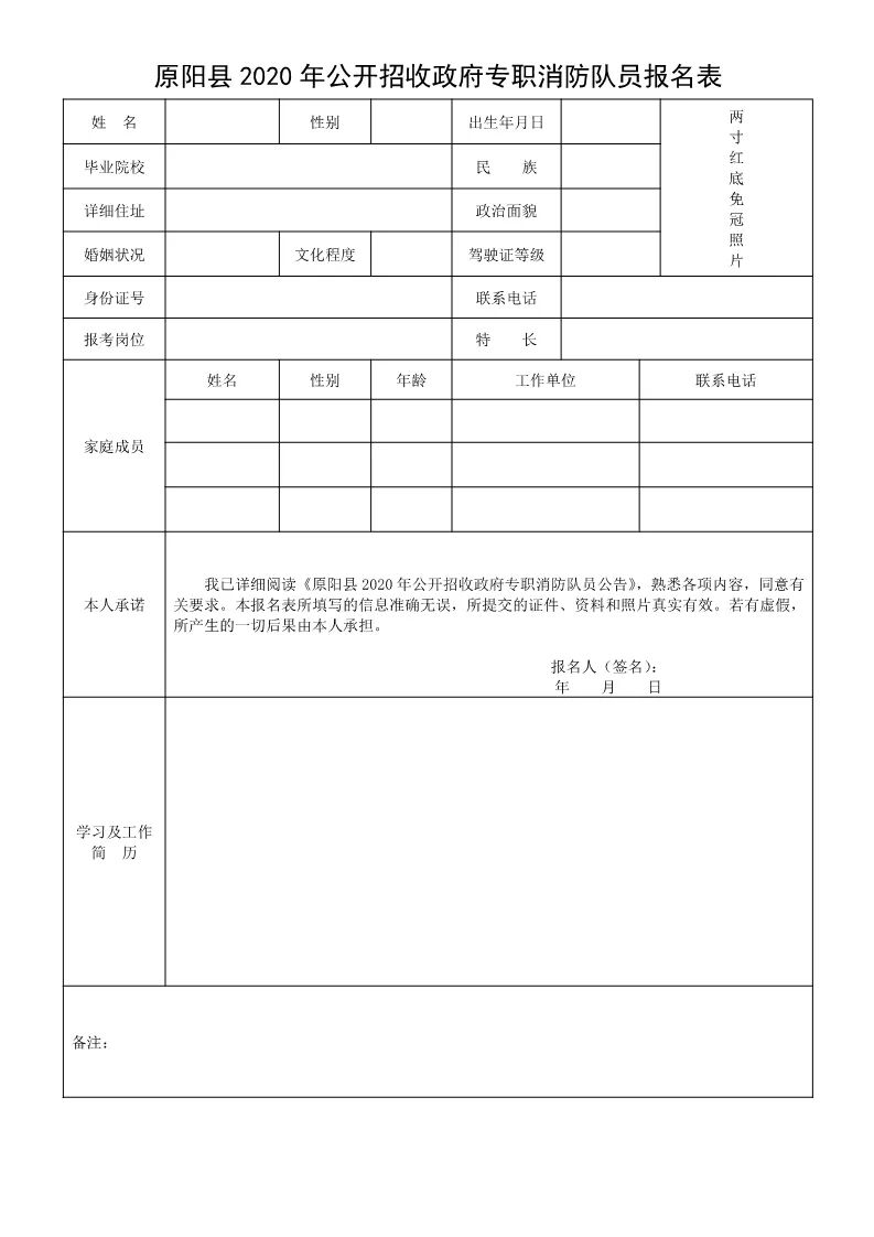报名须本人现场报名,报名时须持本人身份证、户口簿、毕业证、学位证(符合条件的携带退伍证、驾驶证)、7日内本人新冠肺炎核酸检测阴性结果证明材料(省卫建委公布可检测医院:新乡医学院第一附属医院、新乡医学院第三附属医院、新乡市第一人民医院、新乡市中心医院)等。以上材料均须提供原件,并交复印件一份。交近期2寸红底免冠照片1张和《原阳县2020年公开招收政府专职消防队员报名表》。资格审查以县招收小组现场公布的标准、结果为准。